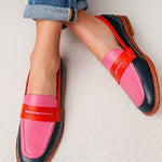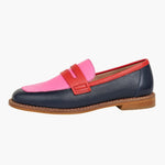 Crafted for women who dare to stand out, the Enlior Signature Colourblock Loafer blends artistry and attitude in one bold silhouette. A confident mix of fuchsia pink, crimson red, and deep navy, this handcrafted loafer transforms every outfit into an expression of self-assurance.